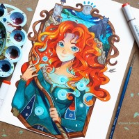 The image shows an illustration of a character that appears to be inspired by Merida from