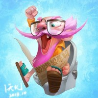 This is an illustration of a character that appears to be from a game or a cartoon. The character has