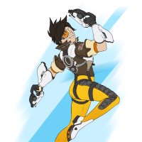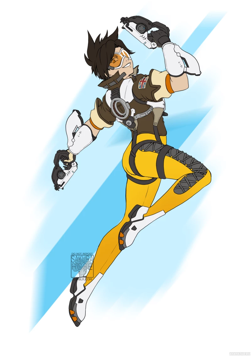 the video game "Overwatch." The character is Tracer, a time-jumping hero known for her