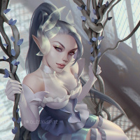 an elven character. She has pointed ears and is wearing what appears to be armor or