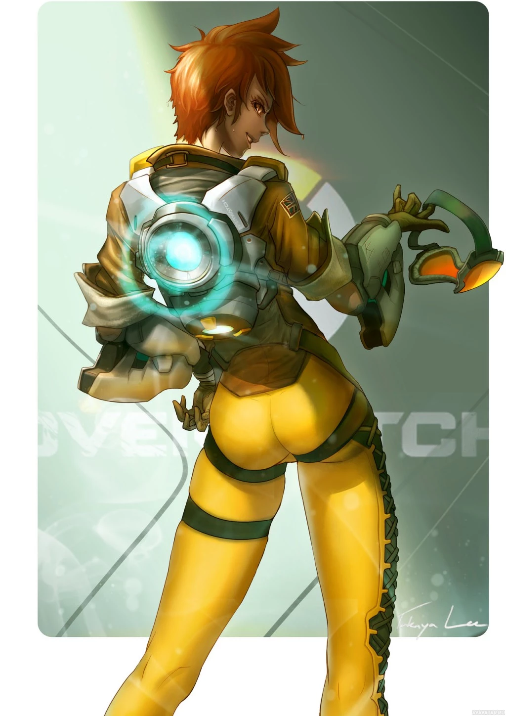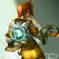 an animated character, known as Tracer from the game "Overwatch." She is a hero with