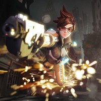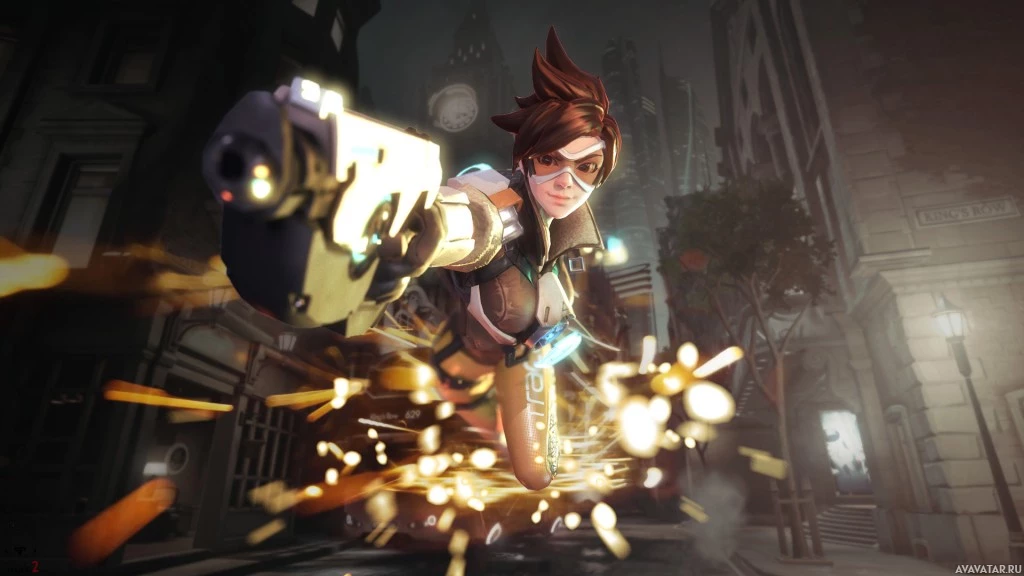 The image depicts a character known as Tracer from