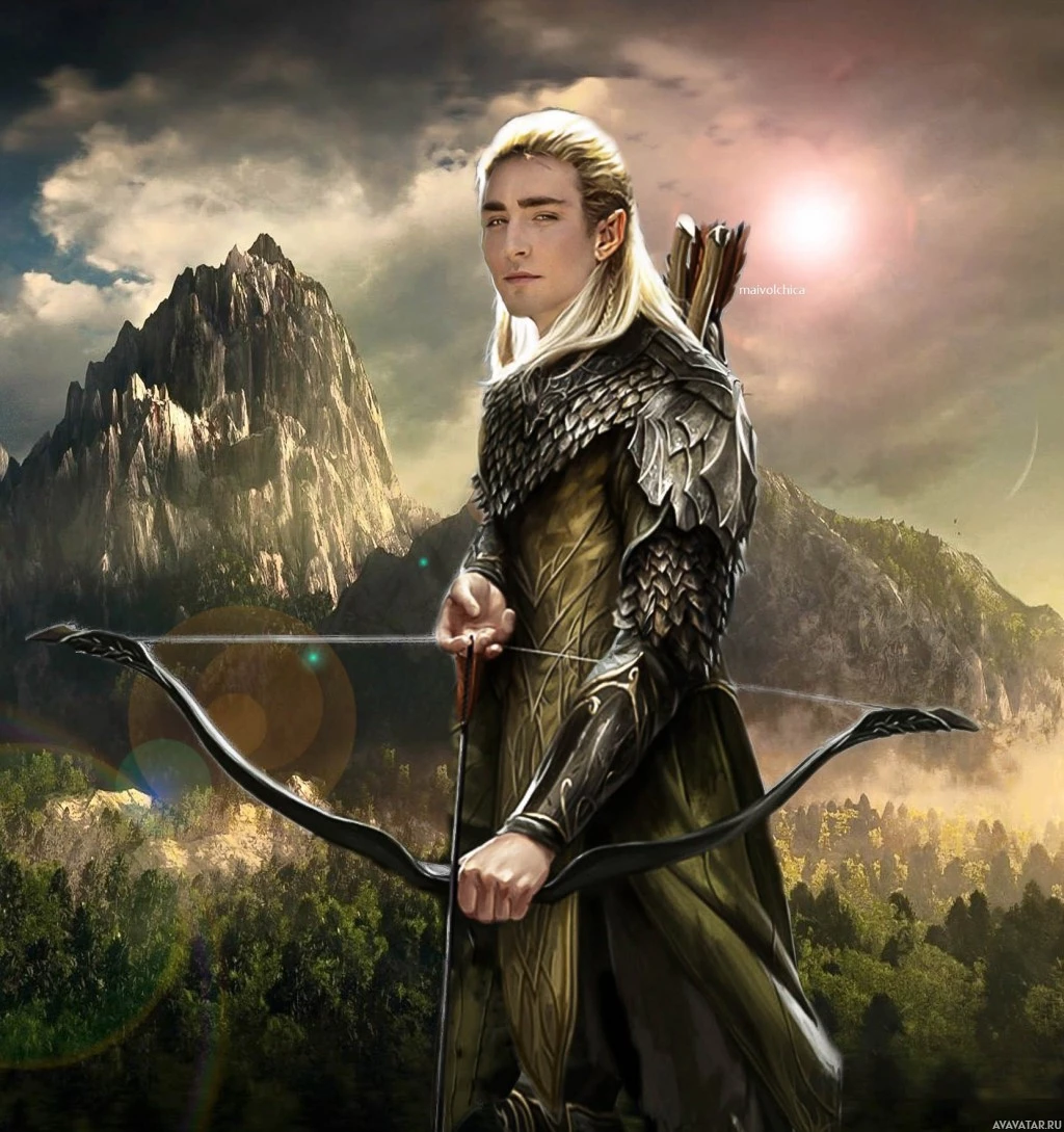 blond hair, and pointed ears, typical to elves in many fantasy tales and movies. The character is holding the bow in