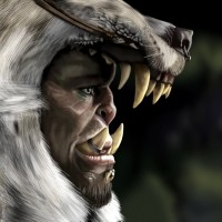 The image depicts a fantasy orc character. This character has prominent features such as large ears, sharp teeth, and a furry appearance reminiscent of a wolf or werewolf. It's important to note that this is a creative representation and not an actual person.