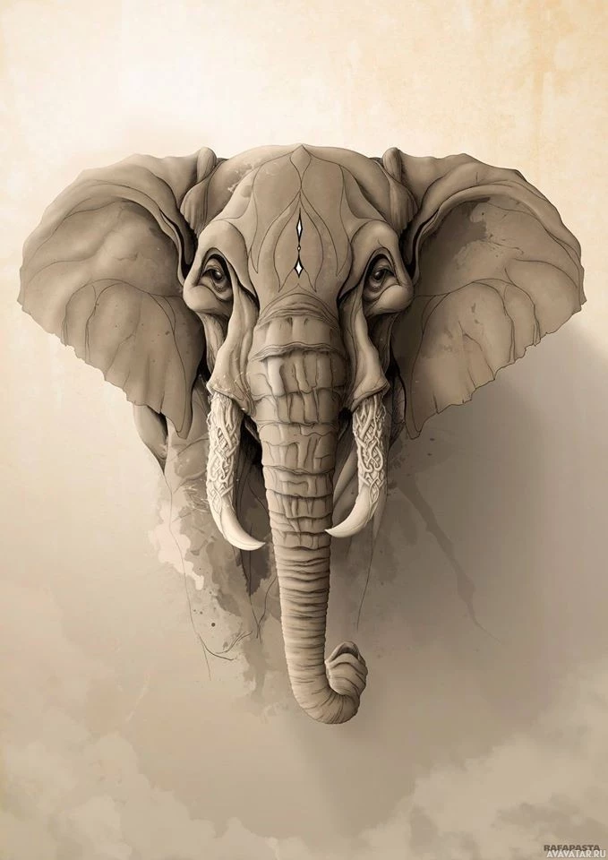 The image depicts a stylized illustration of an elephant. It's drawn with great detail, showcasing the elephant's features such as its
