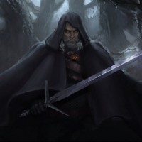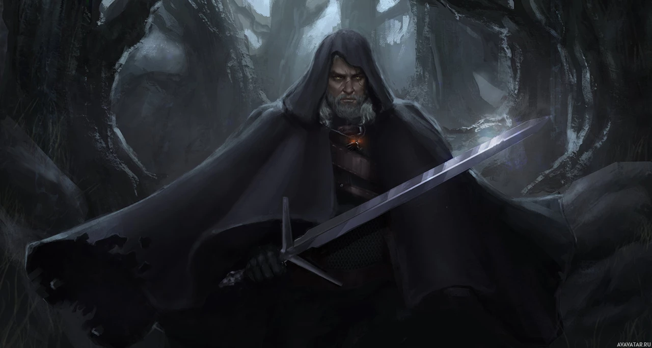 The image depicts a character known as Geralt of Rivia, a central figure in "The Witcher"