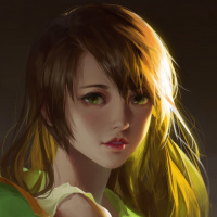 This is an illustration of a young woman with blonde hair. She appears to be wearing a green outfit and has a serious or thoughtful expression on her face. The lighting in the picture creates a dramatic effect, with the sunlight seemingly emanating from behind her.