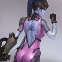 the video game Overwatch. This character is known as Widowmaker, and she is depicted in her iconic black skin-