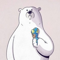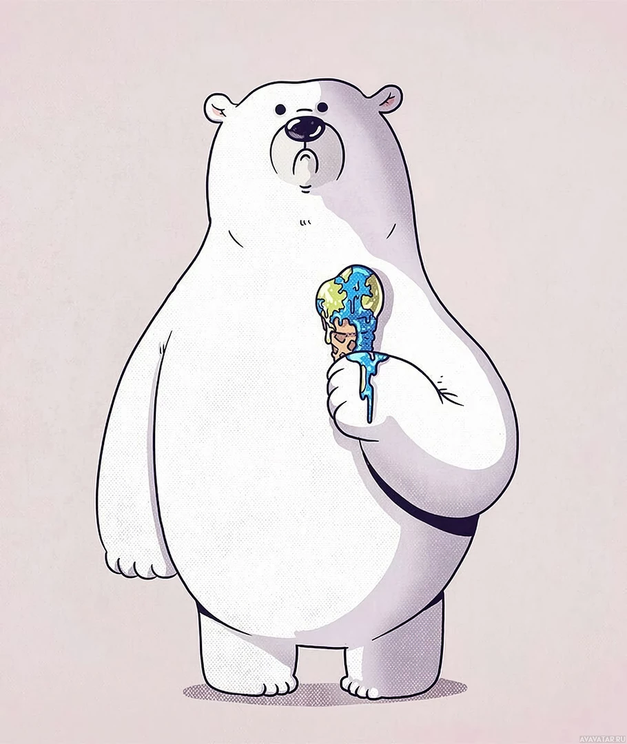 На снимке изображен одушевленный медведь, держащий в руках кусок мороженого с изображенной на нем Землей. Это, вероятно, причудливое или антропоморфное представление, поскольку медведи, как известно, не едят и не взаимодействуют с мороженым в реальности.