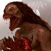 a sense of horror and might be associated with themes of monstrosity and fear within fantasy or horror genres.