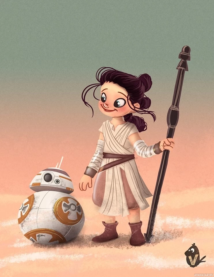 sandy environment, reminiscent of the planet Tatooine, which is a location featured in several Star Wars films. The style of the illustration gives it a whimsical and playful feel, as if it could be part of a children's book or