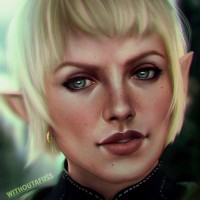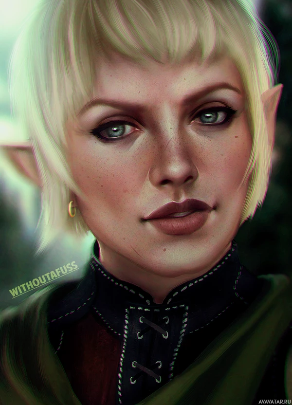 The image depicts a character that appears to be an elf, likely from a fantasy-themed game or story. The elf has short