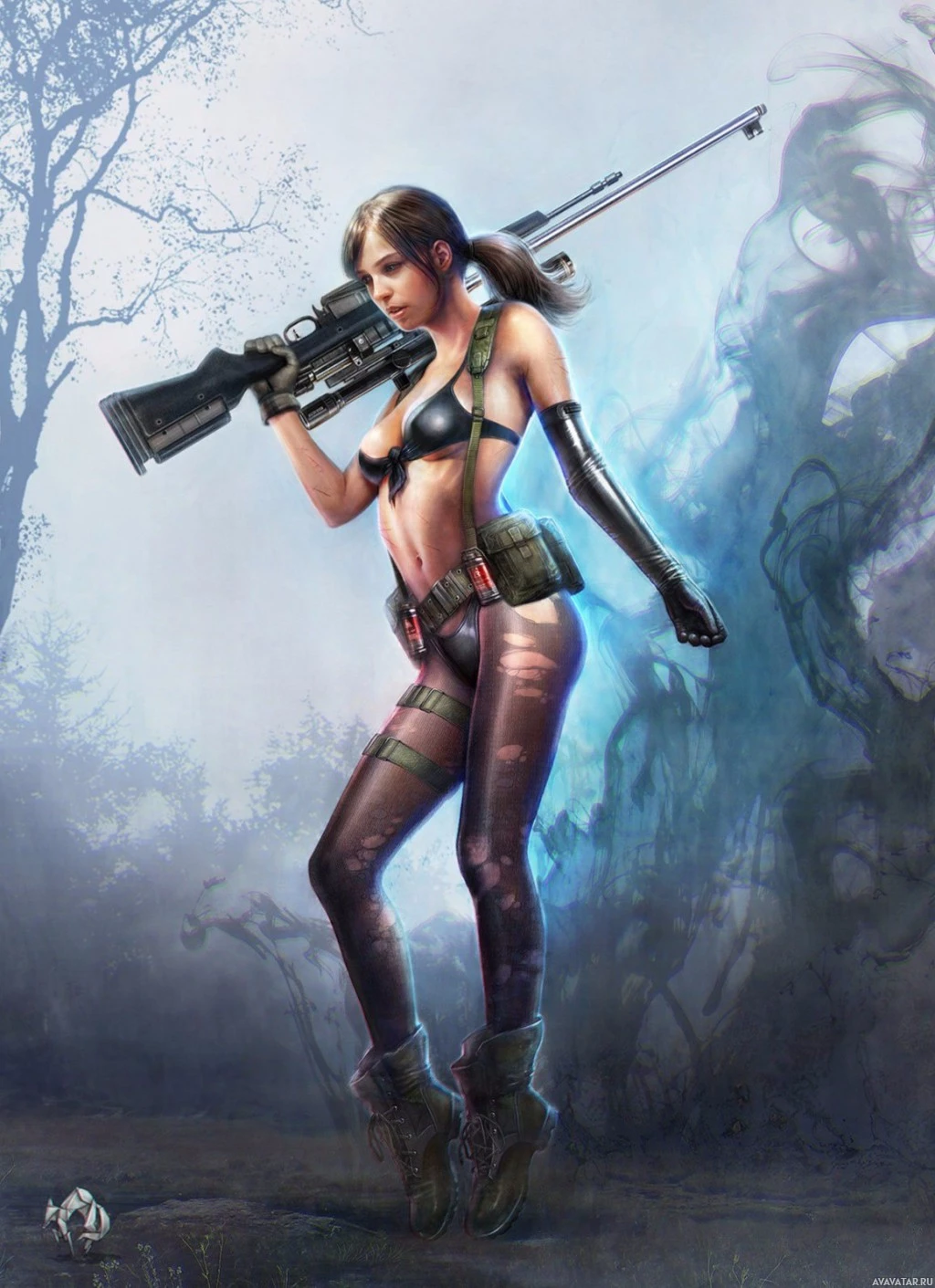 Молчунья (персонаж) | Скачать аватары с Молчуньей | Quiet (character) | Игровой персонаж, одетый в тактическую одежду