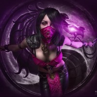 purple tones and what looks like a seal or emblem that might suggest her connection to the Mortal Kombat universe's mysticism or mythology.