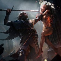 a dramatic scene typical of fantasy-themed artwork or games.
