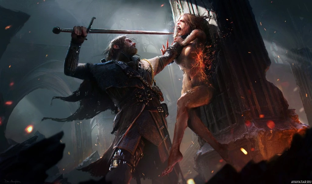 In the image, there are two figures engaged in what appears to be a confrontation within