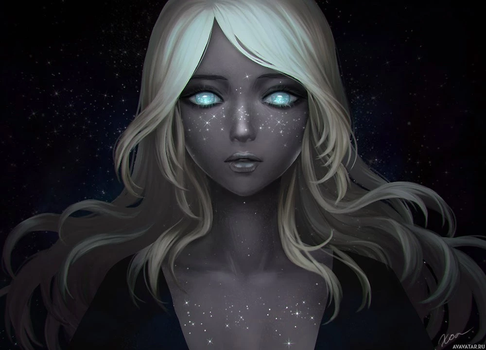 night sky, which could add to the fantastical nature of her portrayal.