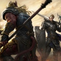 a fantasy setting. On the left, there is a character wearing what appears to be