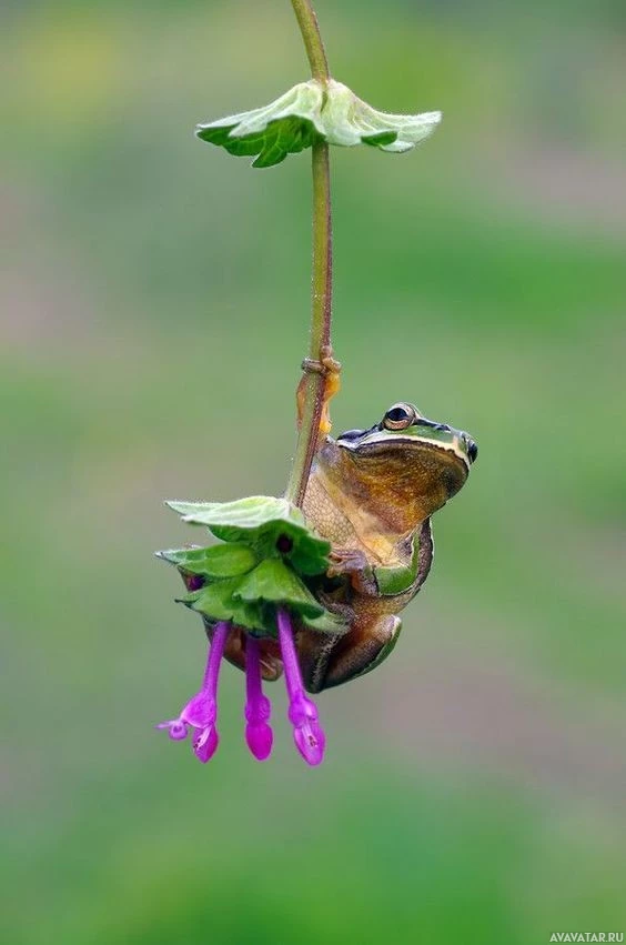 животные | Красивые авы с животным | Animals | Фиолетовые цветы и зеленая лягушка