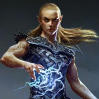 blonde hair and is wearing armor with intricate designs, suggesting they might have some sort of magical or combat abilities given the glowing electricity effect around their hand. It's a stylized digital artwork that could be used for various purposes such as illustrating characters in a fantasy game, novel, or