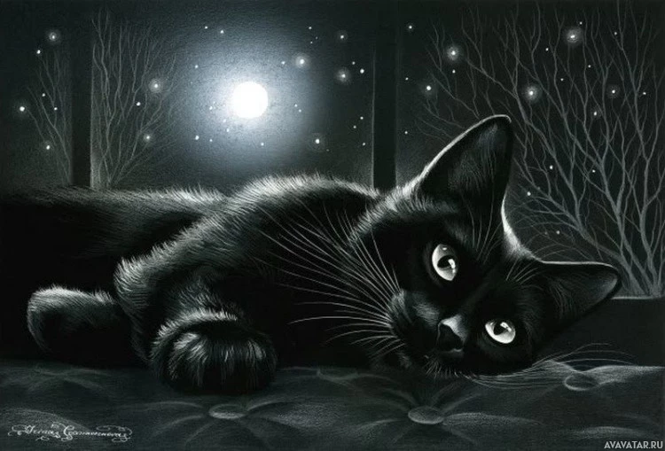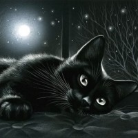 an animal portrait focused on the cat during what appears to be a calm, peaceful night time.