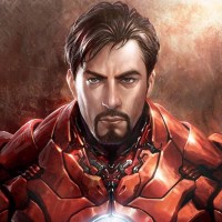 iconic suit, which includes the chest arc reactor and repulsor blasts on either arm. The background suggests an intense or dramatic setting, likely related to the movie's narrative where