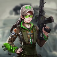 protective eyewear. The image is stylized in an illustrative manner, commonly seen in video game artwork or