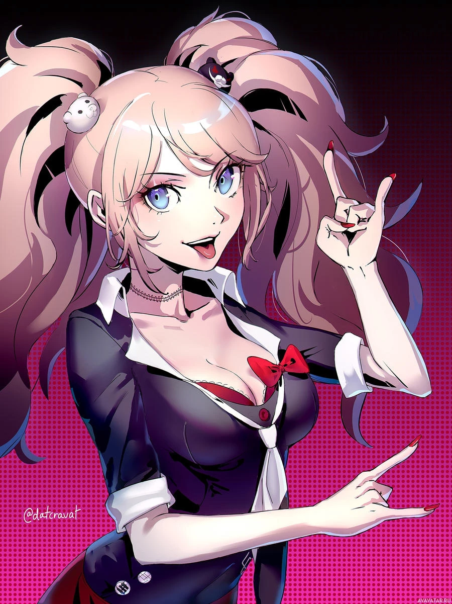 blonde hair styled in pigtails, wearing what appears to be a school uniform. The character has
