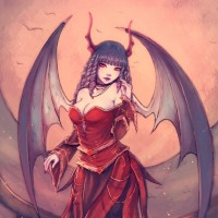 mythological creatures. The character is styled to look like a succubus, which is