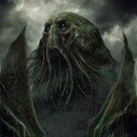 the Lovecraftian deity Cthulhu. It is a fantasy-themed illustration, characterized by