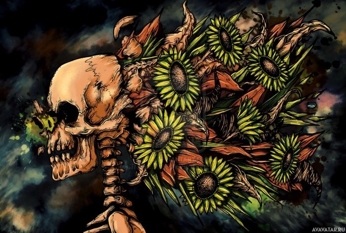 the vibrant colors of the flowers. This is an artistic representation, likely symbolic or conveying a particular theme or message depending on its context.