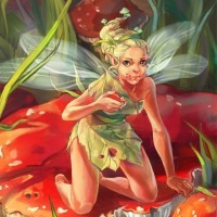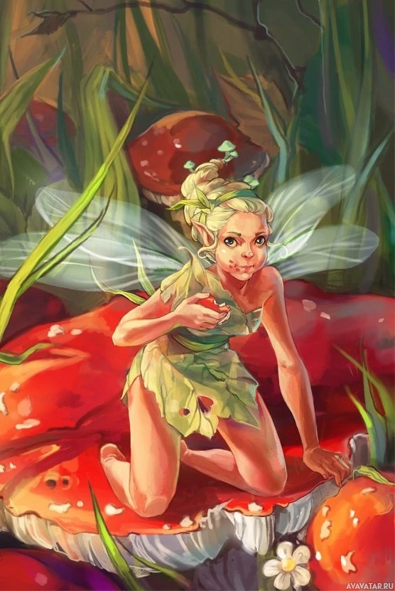 a fantasy setting. The fairy appears to be of a youthful age, with light skin and