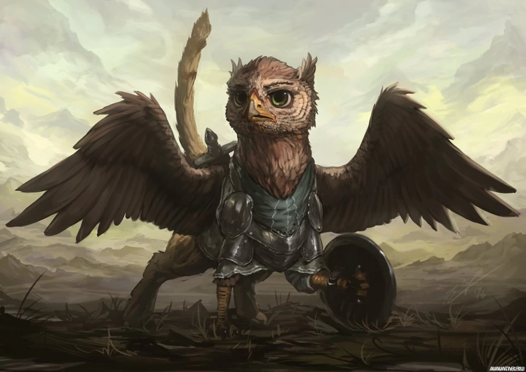 The image depicts a fantasy-themed character that appears to be a griffon. Griffons are