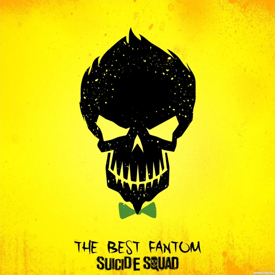 a yellow background with a skull and crossbones in the center, which is often associated with danger or piracy. Above the skull, there are words that read "The Best Fan" and below it says "Suicide Squad," indicating that this might be related to