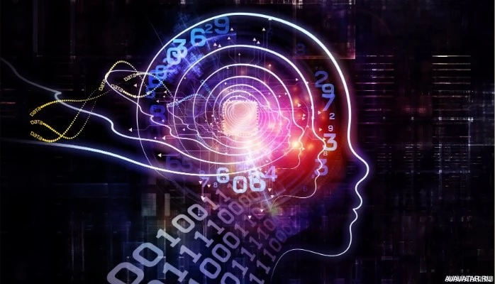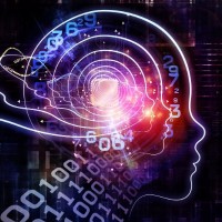 binary digits and symbols that could be interpreted as numbers and mathematical equations. These elements create a futuristic or technological theme, possibly representing concepts like artificial intelligence, data processing, or