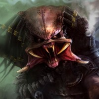 The image depicts a character that appears to be the Predator, a fictional