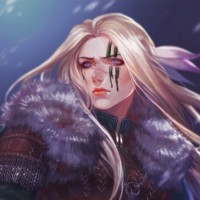 blonde hair and is wearing armor with a fur-lined cloak, suggesting she's well-prepared for combat or travel in harsh conditions. There are runes visible on her clothing, which could indicate magical properties or be a part of her