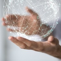 a digital globe. This globe appears to be displaying a network of lines and nodes, which could represent a visualization of connections or relationships between different entities, possibly indicating