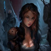 armored outfit, suggesting that they may be part of the same group or storyline. The art style suggests it could be from