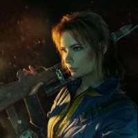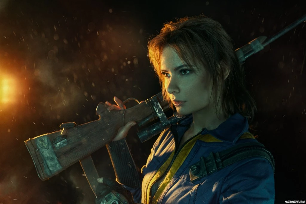 На картинке изображен женский персонаж из видеоигры «Fallout 4». Она держит винтовку и, похоже, находится в обстановке, которая предполагает постапокалиптическую обстановку, что характерно для серии Fallout. Одежда и снаряжение персонажа соответствуют ретро-футуристической эстетике игры. Ее поза и выражение передают уверенность и готовность к бою.