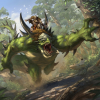 sharp teeth, and a muscular build with dark skin. It's wearing some kind of armor that seems to be crafted from the materials of