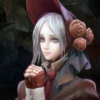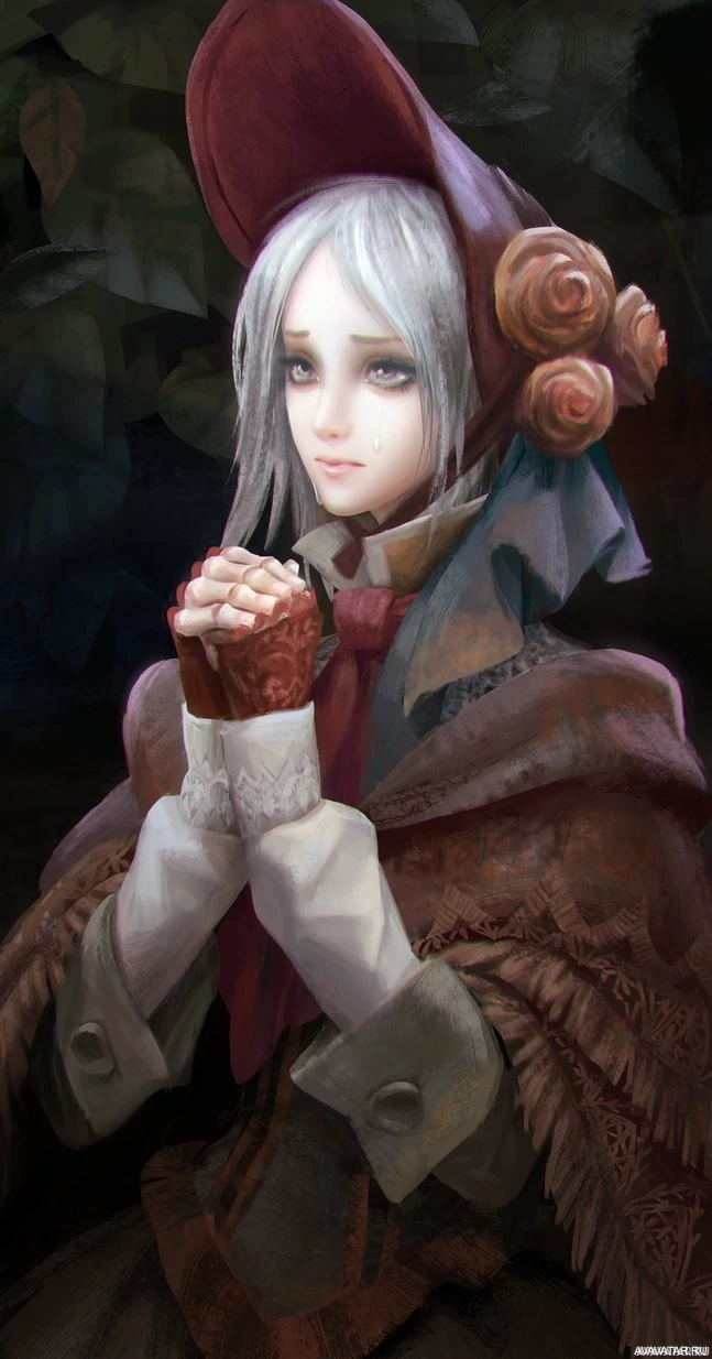 video games or fantasy literature, with the character's design reminiscent of those found in games such as "Bloodborne."