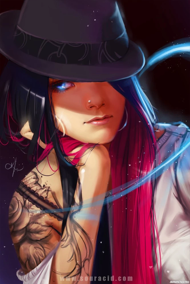 a black hat and have visible tattoos on their arms. There is also an arcane