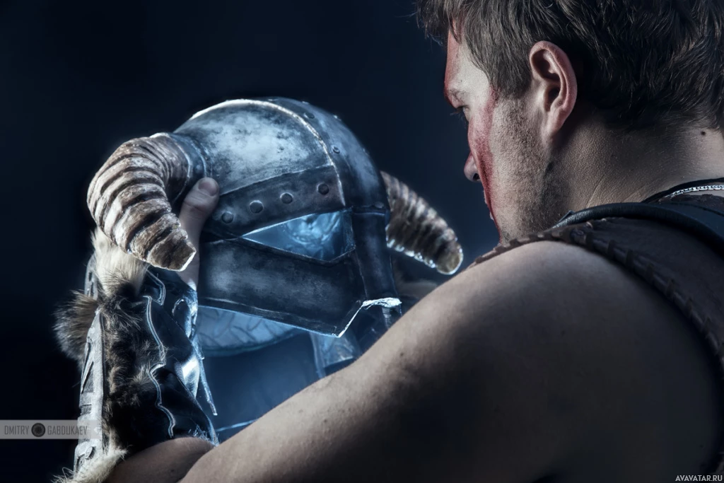 Norse attire, including a helmet with ram's horns and a mail shirt, while the other character is dressed in more contemporary armor suitable for battle. Both characters are holding weapons, one with a sword and the other with a shield. The setting seems to be outdoors at night, given
