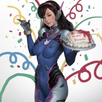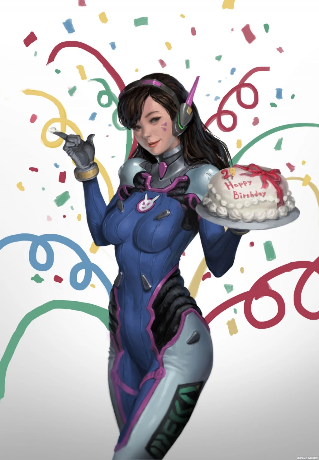 a female character from the video game "Overwatch." She is depicted as D.Va, one of the game's heroes known for her