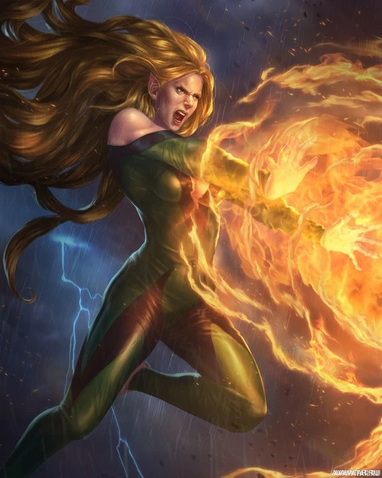 a dramatic scene with dark clouds, lightning bolts, and flames, which implies a chaotic or intense battle is taking place. This type of artwork is commonly found in