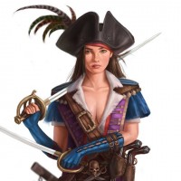 a female character dressed as a pirate. She is wearing