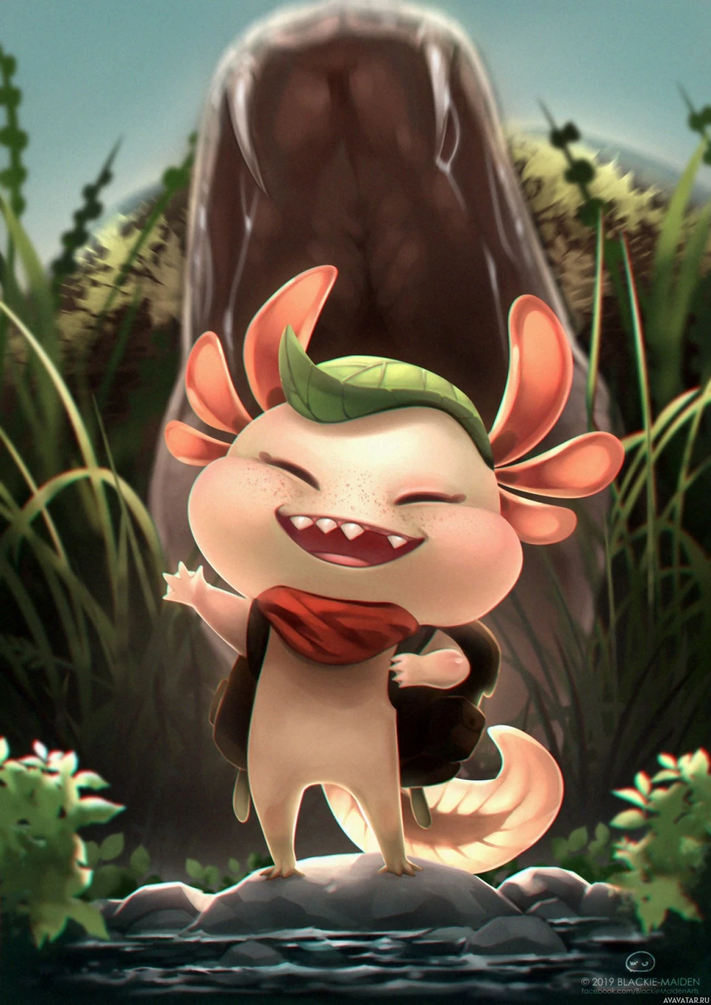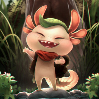 The image features a cute and colorful character that resembles an axolotl, which is known for its