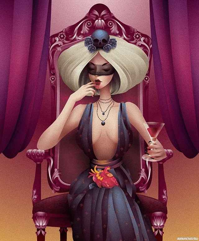 the regal atmosphere. There's also a hint of a mask or a face covering on the right side of the image, suggesting some level of mystery or intrigue around her identity or character.