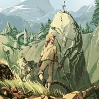 wilderness area, possibly in a mountainous or forested region. There are no explicit indicators of her being a girl based on the image provided; she appears to be